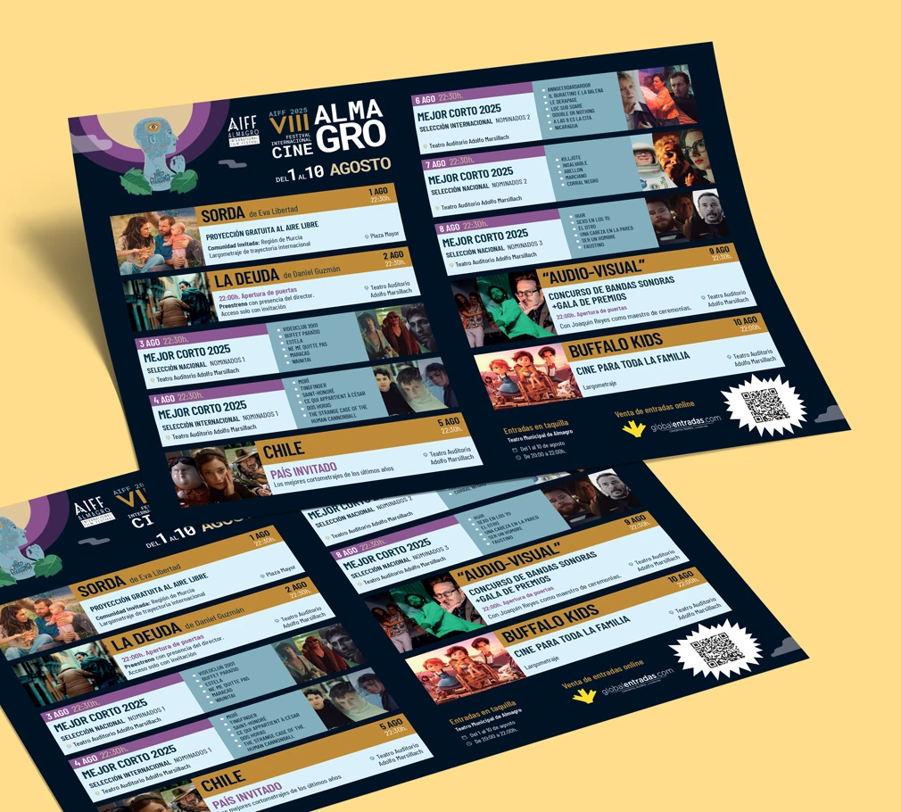 El resultado es un despliegue visual sólido, contemporáneo y adaptable, que dota al Festival Internacional de Cine de Almagro de una voz clara y consistente en todos sus puntos de contacto.